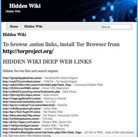 通过检索网站就可以建立进入这些网页的路径。检索网站有点像电话簿或黄页,是一个包含所有隐藏服务的名单(Hidden Servies)。最著名的索引网站就是 Hidden Wiki。此外还有专门的搜索引擎比如 Torch。